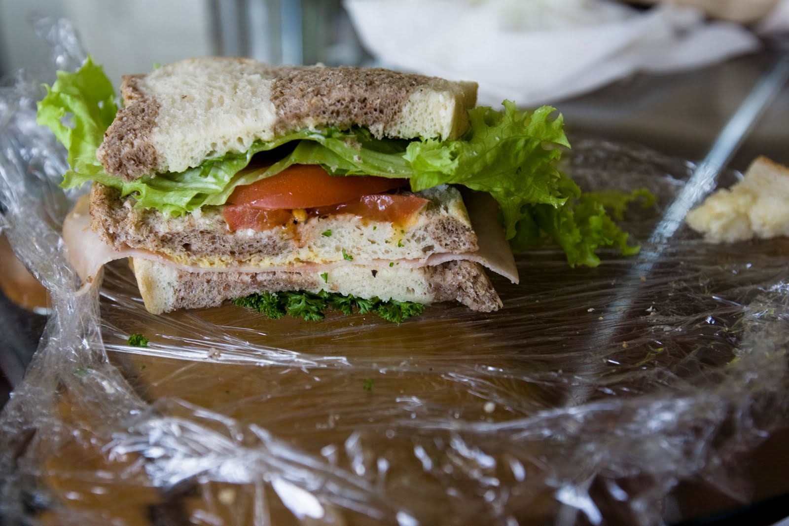 Anyway, because this sandwich has three slices of the softest, most delicious bread I've ever tasted, I don't even mind the one slice of ham! And that is the moral of today's story. Enjoy the conversation, the day brightened by strangers, the soft chewy bread, the mustard and freshly ground pepper, the juicy slice of tomato, and don't worry about the rest.