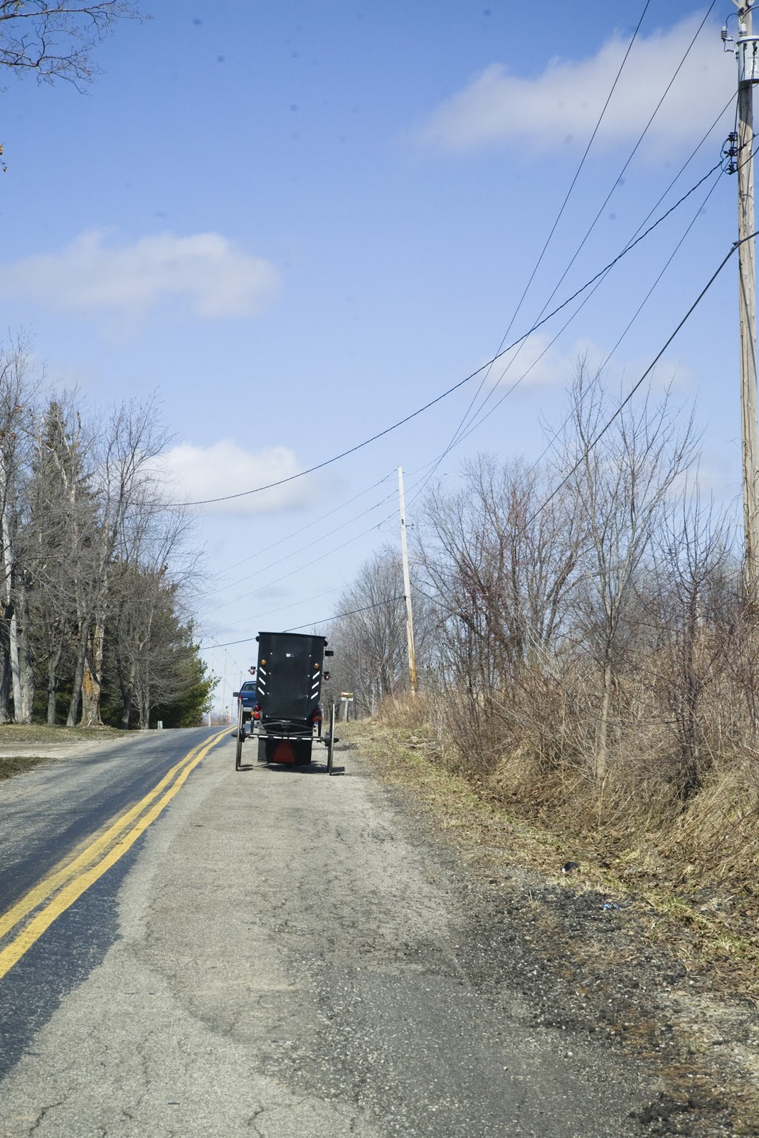 NZ friends, this is an Amish buggy, being pulled by a horse.